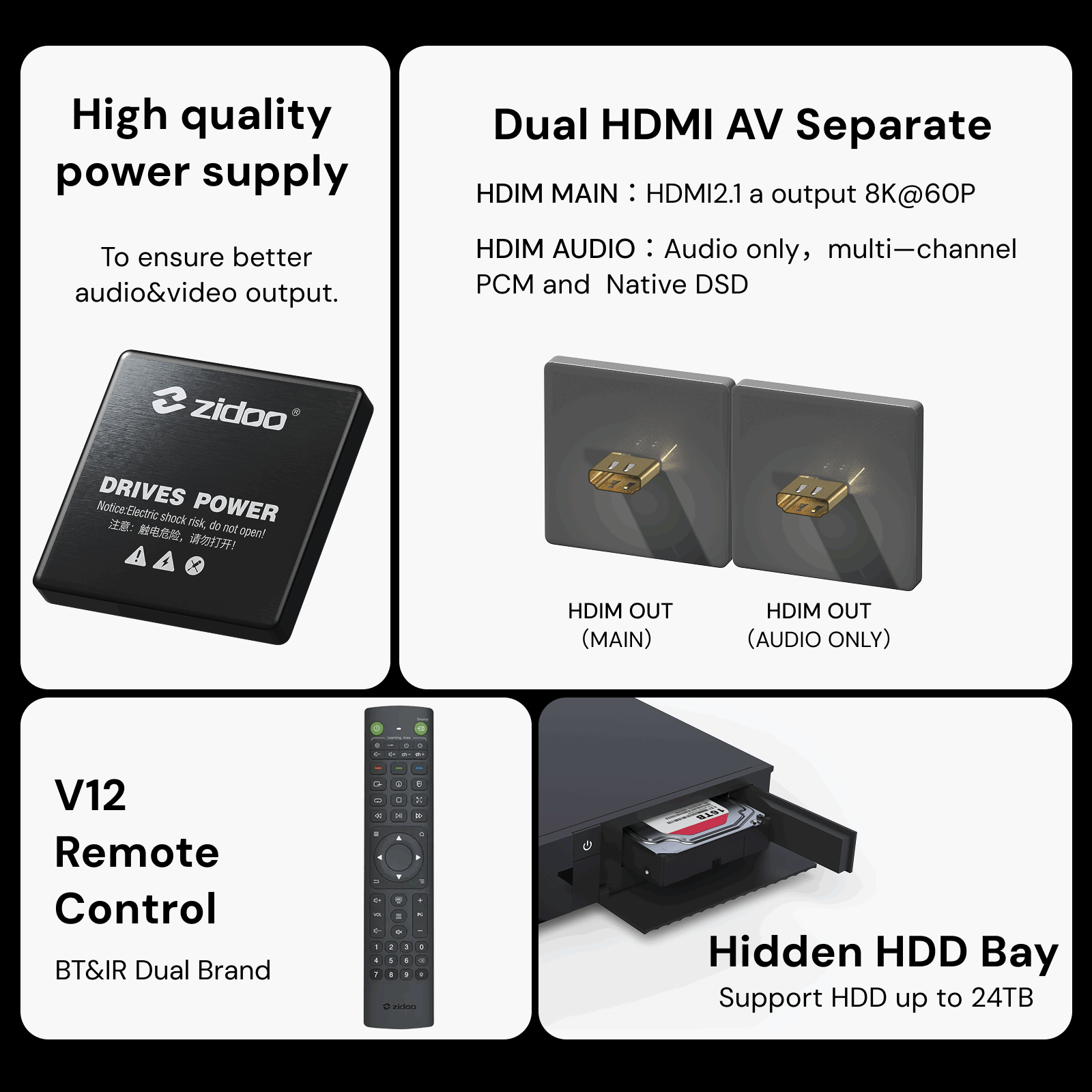 zidoo Z3000 PRO-8K Media Player, Amlogic S928X-K Processor 8G+64G,8K Android 11os, Support DV,HDR10+ and All HDR Technoly No 3D output